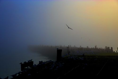 A Partial Eclipse of the sun, covered by cloud. A fishing boat leaves Oamaru Harbour for the days catch. 22nd September 2025.