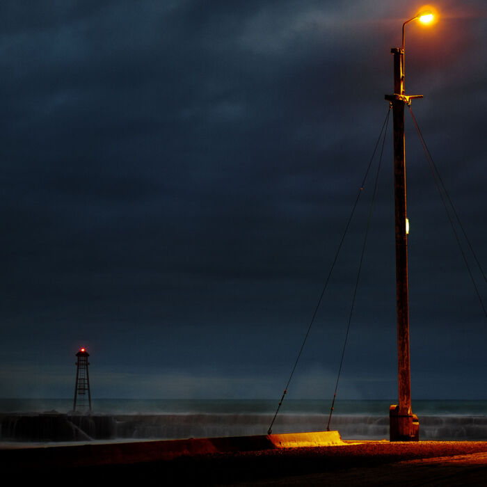 At the end of Oamaru breakwater, two lights vie for the attention of lost ships.
